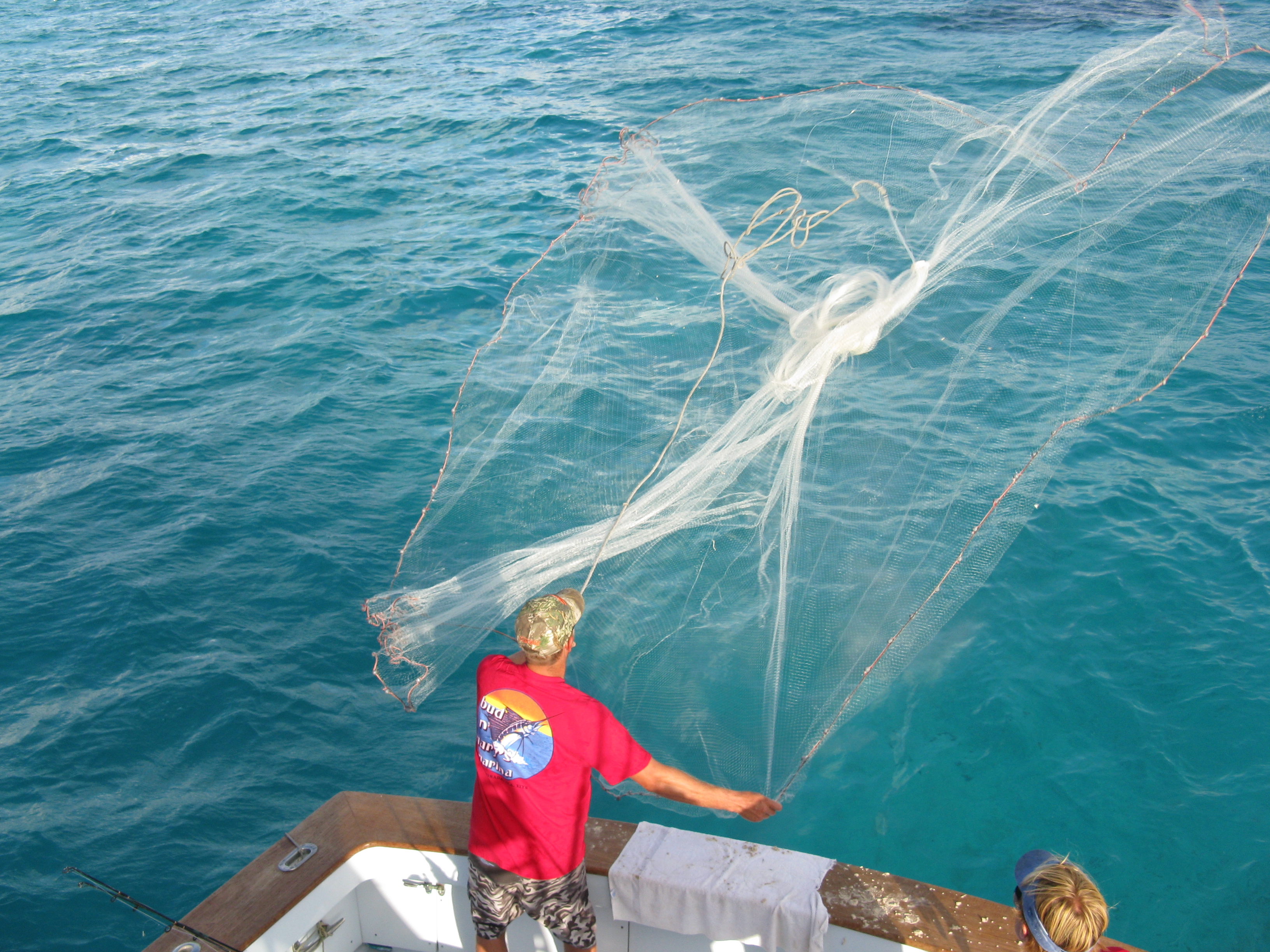 Mate K.J. Zeher expertly throws a big cast net from the stern of the Catch-22…