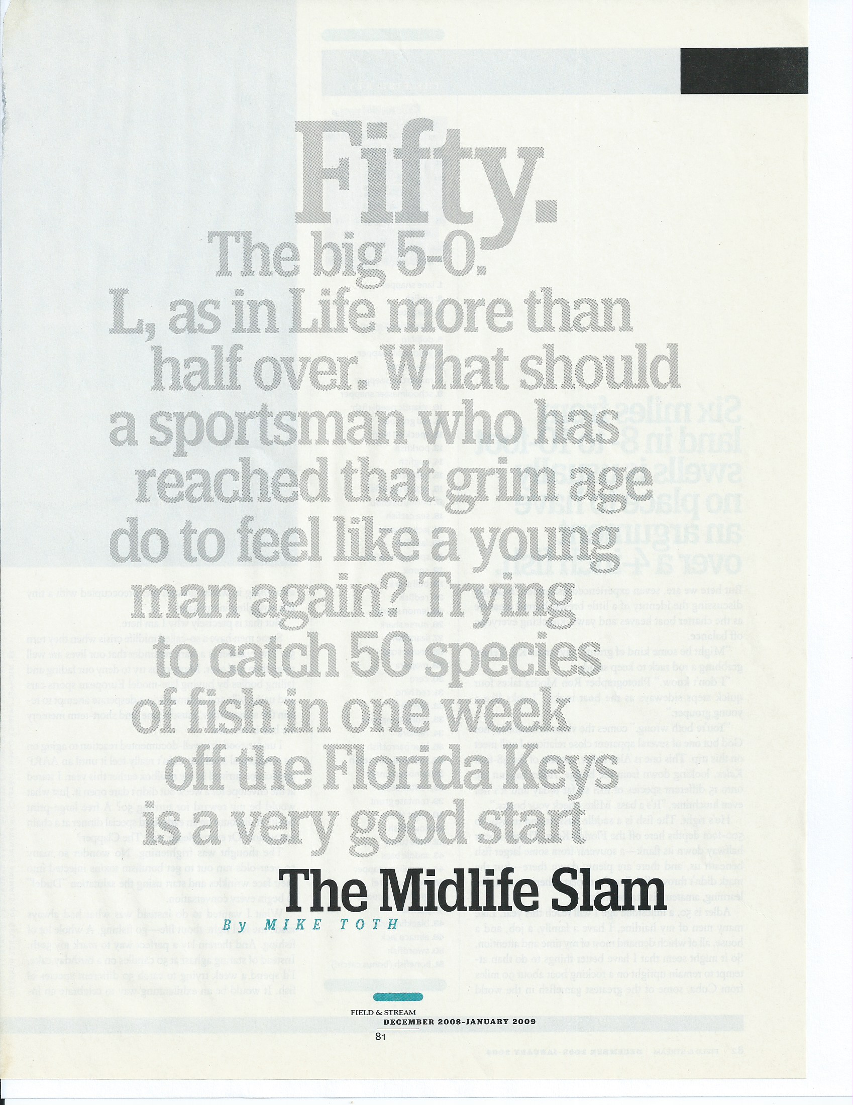 I’d fished the Florida Keys many times before I wrote this story for Field & Stream. Keys fishing is outstanding and varied, the lifestyle is laid back (except when it comes to fishing) and the seafood is abundant and fresh. Turning 50 provided a perfect excuse to go back and fish a LOT. The photo of the F&S page below is proof that I followed through.