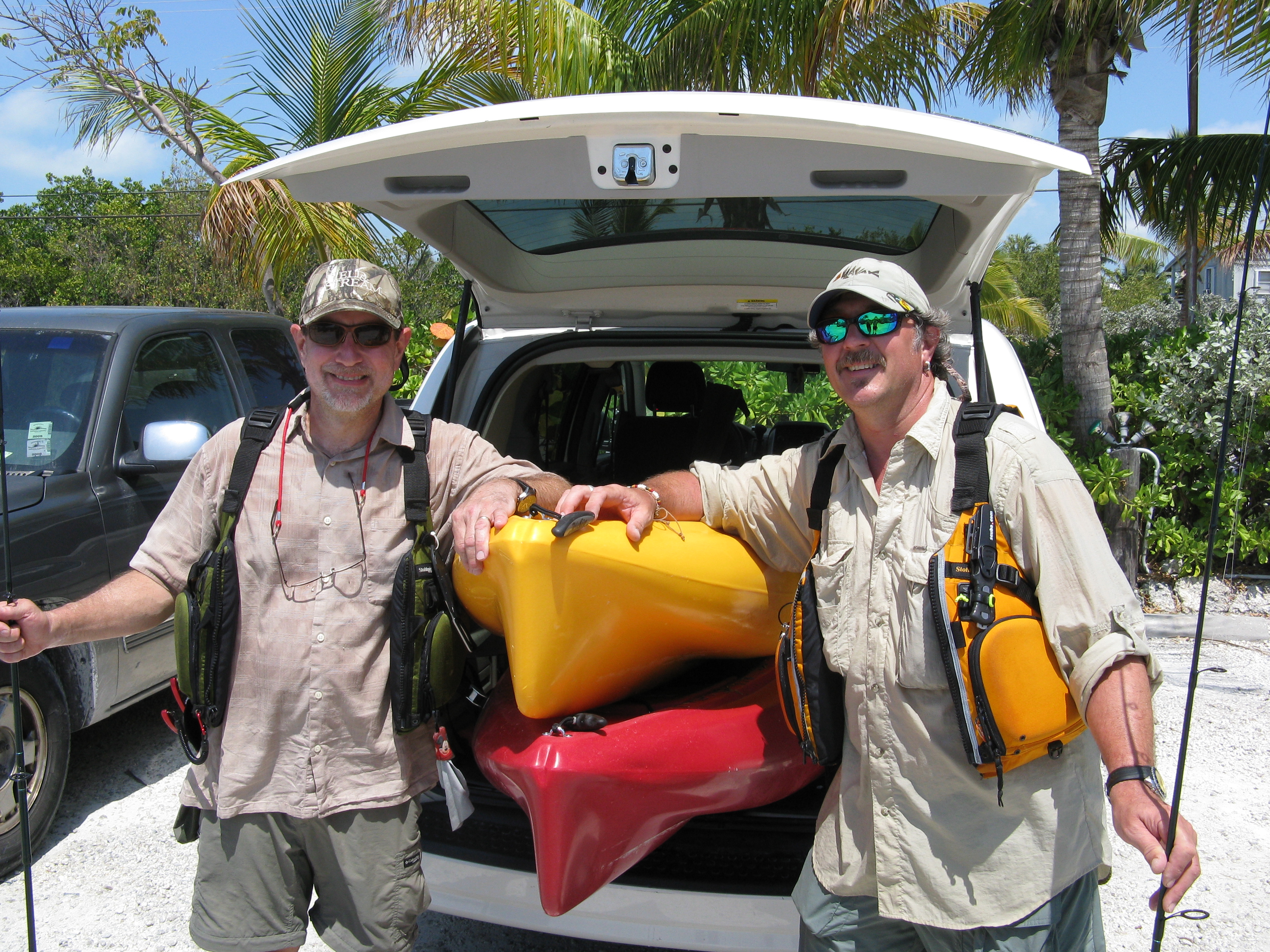 We were able to nest our rented 12-foot Hobie Outbacks right in the back of the rented minivan.